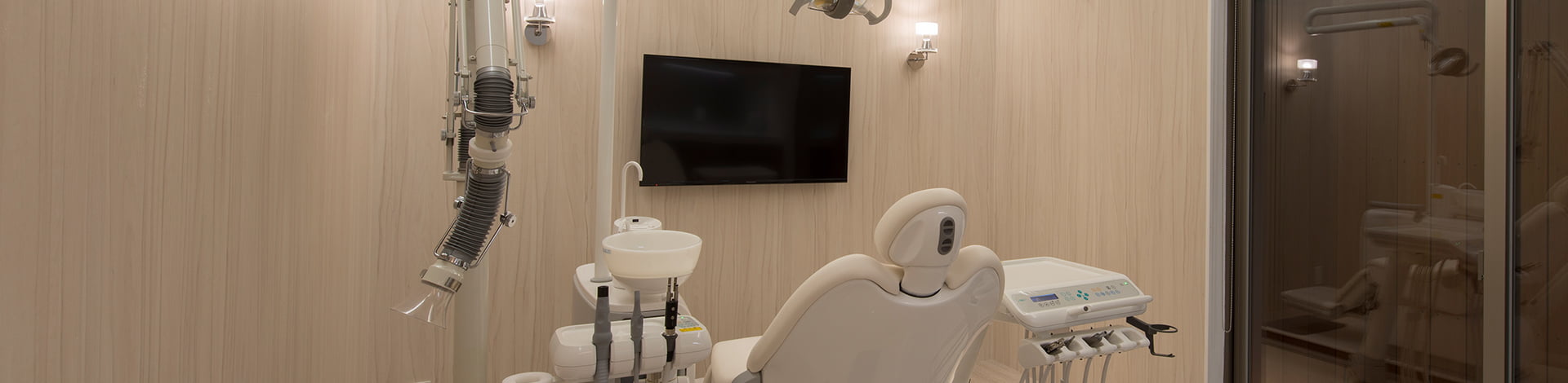 診療室は全室個室になっており、お隣の治療を気にすることなくプライバシーに配慮した空間です。また、お口の中の治療にはご不安を感じられることも少なくありませんので、治療方法から費用面についても、しっかり丁寧にご説明させていただきます。専用のカウンセリングルームでレントゲンや各資料をモニターで見ながら、患者様のご要望に応じて治療プランをご提示しています。虫歯や歯周病など患者様お一人お一人の原因は異なります。生活環境や将来的なリスクなど、十分に理解して頂いてから治療に臨みます。